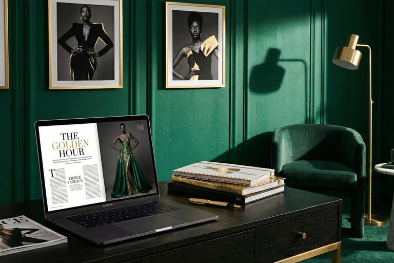 To demonstrate scalability and editorial application, the visuals were translated into layout designs, magazine spreads, and branded story sequences.