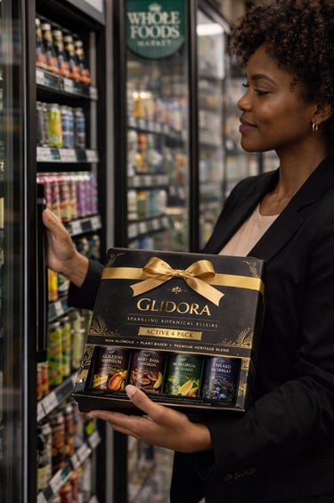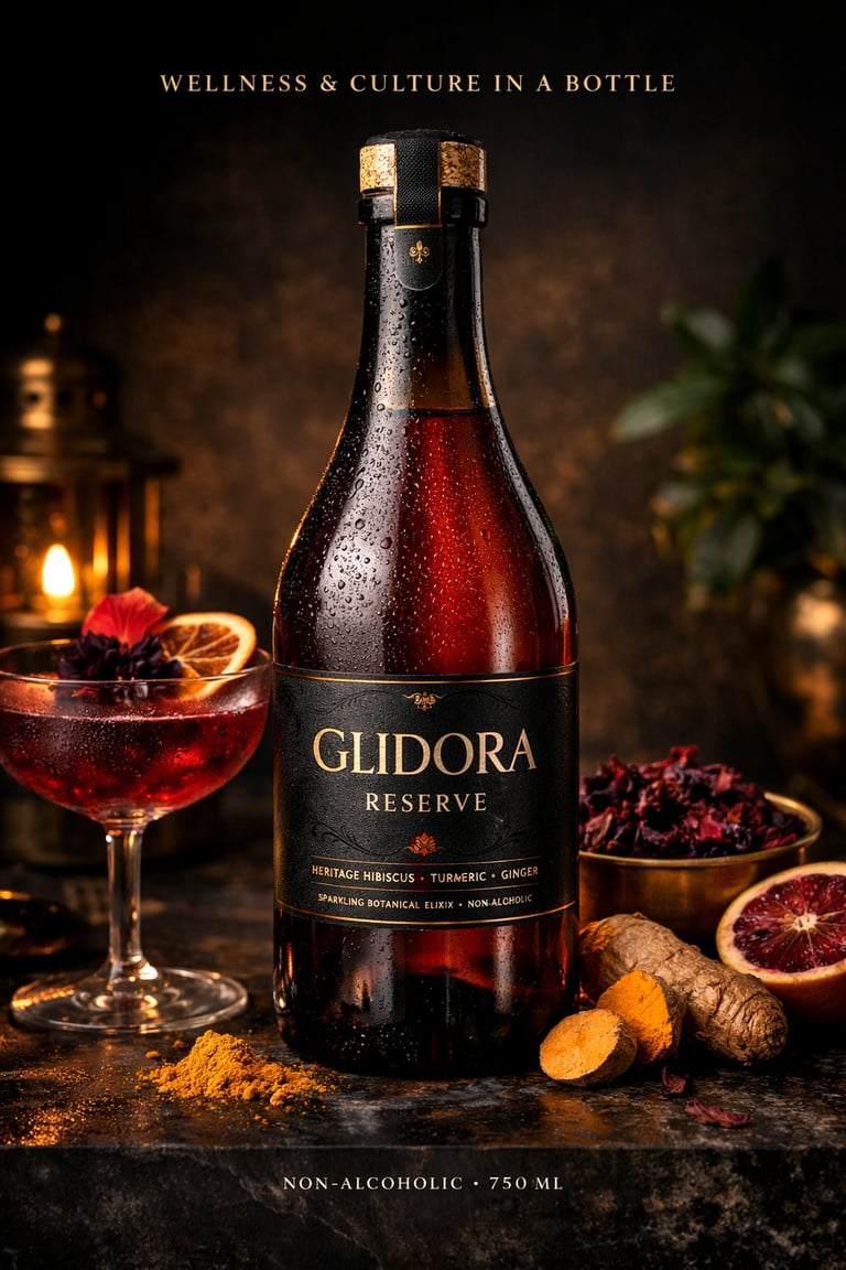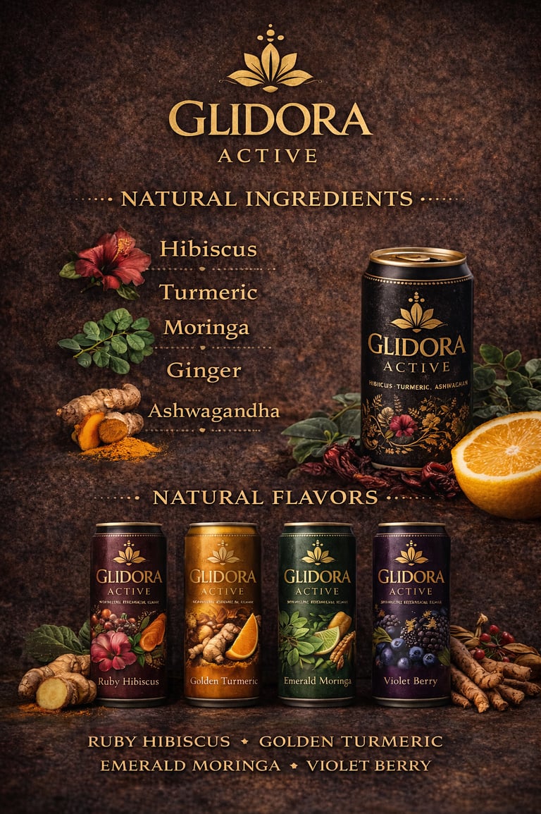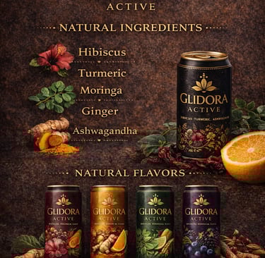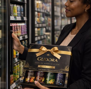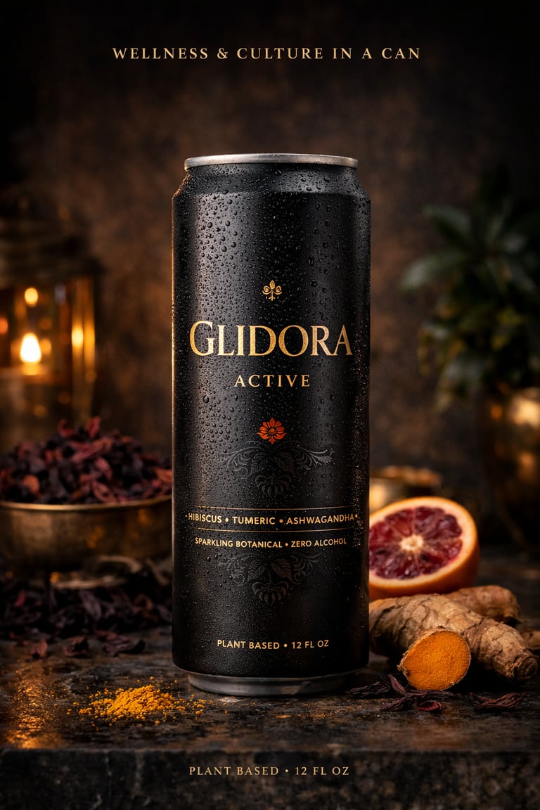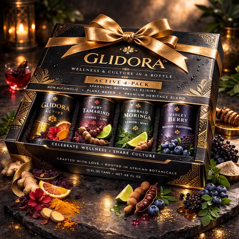 Designed as an adult wellness beverage, Glidora™ blends African-inspired botanicals with low-sugar functional ingredients to create a drink that supports calm focus, immunity, and daily vitality — without artificial sweeteners, heavy sugars, or alcohol. Each formulation reflects a commitment to clean-label nutrition and cultural storytelling, making it suitable for hospitality, wellness retail, and everyday lifestyle consumption.