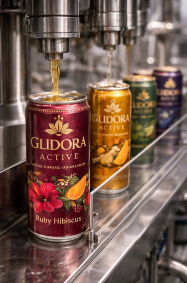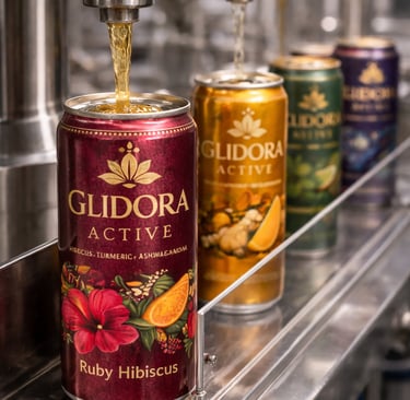 A functional canned beverage line created for daily wellness routines. Glidora Active™ delivers botanical support in a convenient grab-and-go format suitable for gyms, offices, and retail environments.