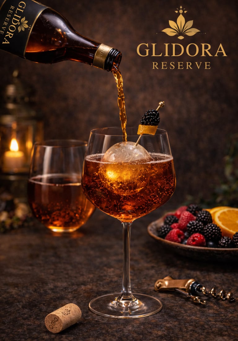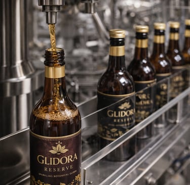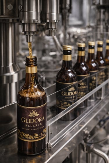 A 750ml hospitality line designed for fine dining, boutique hotels, and premium social settings. Presented in glass bottles with gold-accented labels, Glidora Reserve™ offers a refined non-alcoholic experience for elevated occasions.